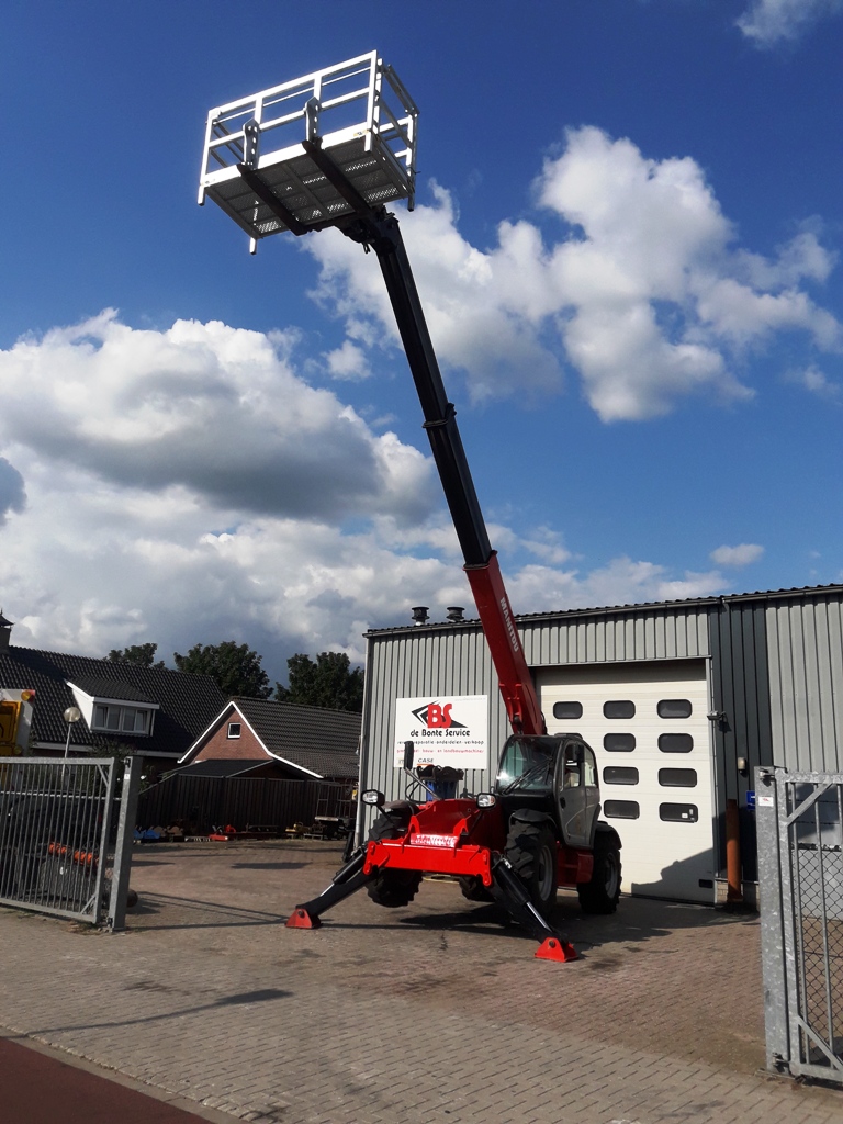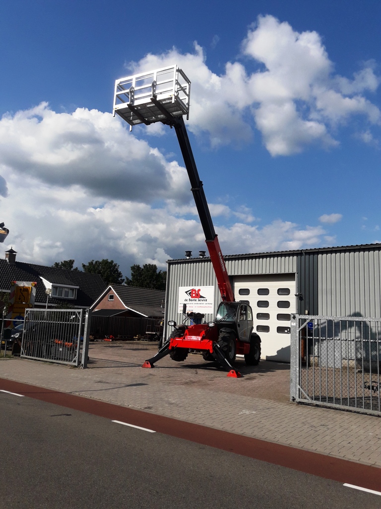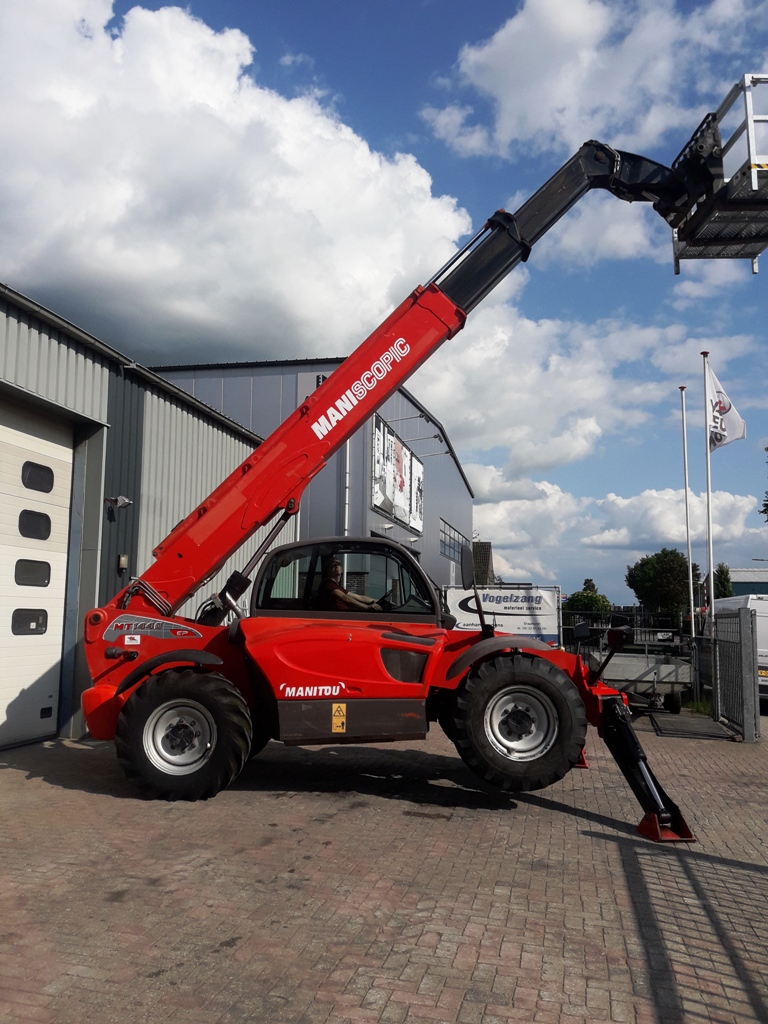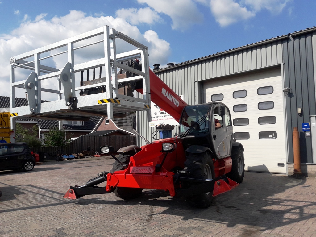 De Manitou MT1440 werd voorzien van palletvorken en een nieuwe manbak.
