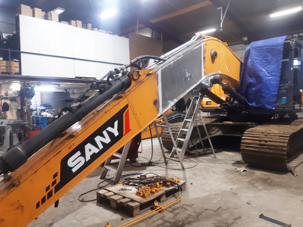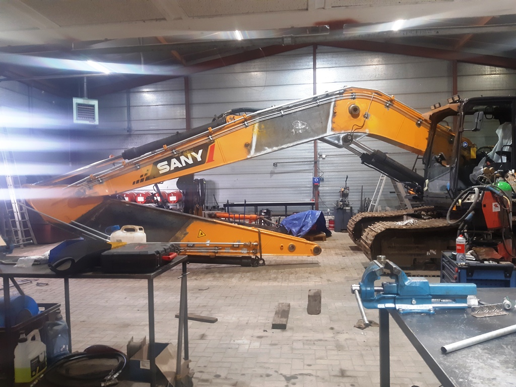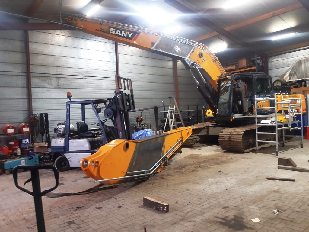 Onlangs verzorgde de Bonte Service voor Gémar Natuurbouw uit Grafhorst de giekverlenging voor de Sany SY235C.