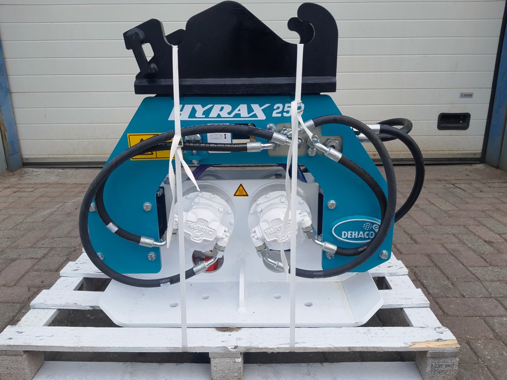 De Dehaco hyrax trilblokken met dubbele excentriek en 2 hydrauliek motoren die voor aandrijving zorgen voor een nog betere prestatie.